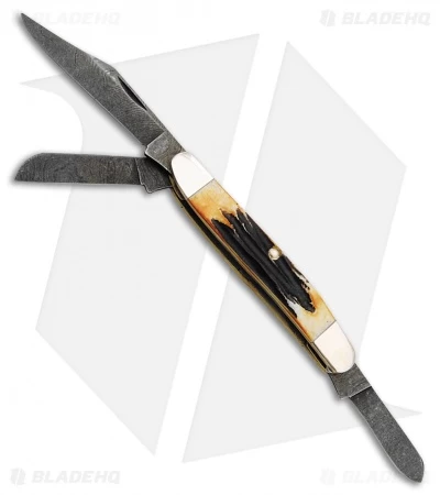 - Damascus steel clip point, spey, and sheepsfoot blades with a nail nick opener.