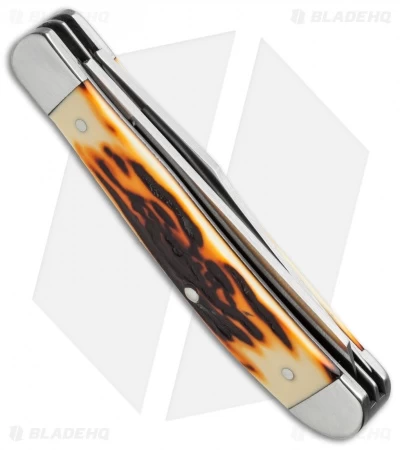 This traditional Bear & Son folding knife is a modern take on the classic trapper pocket knife design. The Mini Trapper features a clip point and a spey blade, made from satin finished stainless steel. Polished nickel bolsters and sim stag handle scales add an elegant appearance to the piece. Stainless steel construction with steel liners provide a solid framework that will stand up to your toughest cutting jobs. The Bear & Son Mini Trapper will make a great addition to any pocket knife collection.
