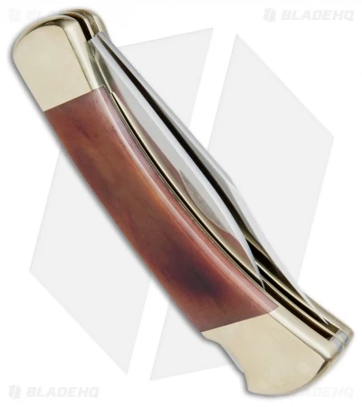This Buck 110/112 Combo pocket knife sports a dual blade Trapper design with a clip point blade and a drop point blade. Both blades lock up solid with a lockback mechanism. The classically designed handle is outfitted with brass bolsters and liners and smooth brown bone inlays. This is a heavy duty pocket knife designed for putting to work and not just resting on the collection shelf.