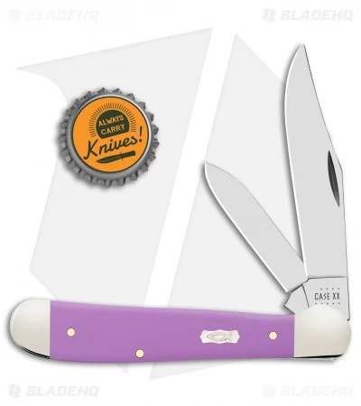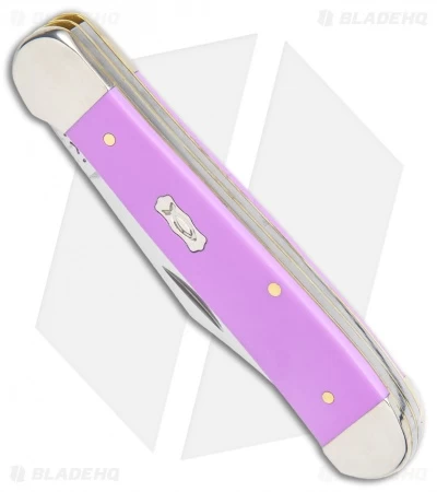 This Copperhead has a Lilac Ichthus Synthetic handle and clip point and pen blades.