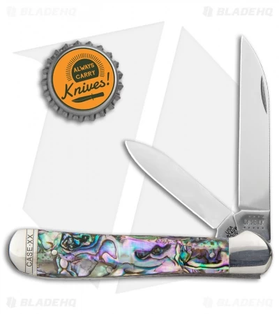 This Copperhead has a smooth abolone handle and Wharncliffe and pen blades.
