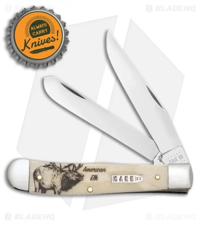 This Sportsman Series Trapper model has a natural bone handle with elk embelishment.