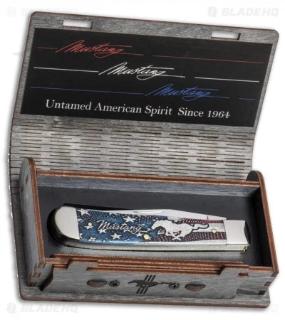 This Ford Mustang edition Trapper model has an American Flag/Mustang embelished handle. It comes in a presentation box.