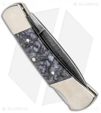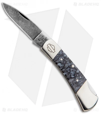 The Case Harley-Davidson Lockback pocket knife with black swirl Kirinite scales is a fantastic addition to any collection. Chrome Vanadium steel drop point blade is capable of any of your daily cutting tasks. A vivid swirl of black and white, Kirinite scales resists chipping, cracking, warping, and shrinking. Polished nickel silver bolsters with brass pins and liners complete this beautiful and unique knife.