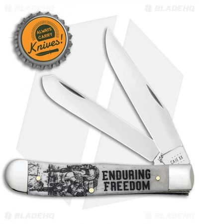 - Enduring Freedom embellished Natural bone handle scales with nickel silver bolsters.