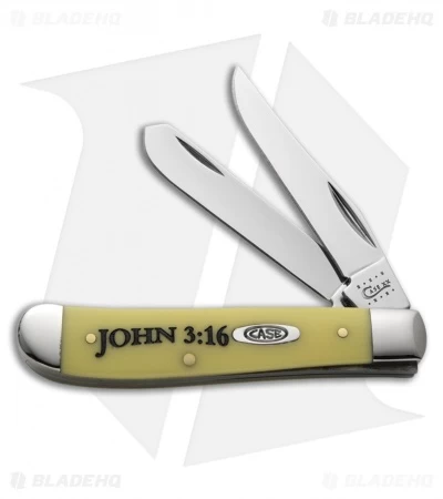 Case Mini Trapper Knife 3.5″ Yellow Synthetic “John 3:16” (3207 SS) 8850