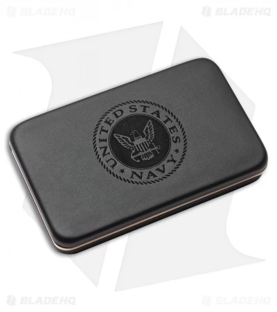 This Navy Edition Trapper model has a brown bone handle with Navy embelishment.