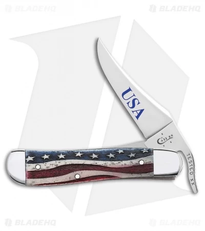 Celebrate your patriotism with pride with Cases’ Star Spangled Russlock liner lock knife. Tru-Sharp surgical stainless steel blade features blue USA embellishment. Smooth bone scales feature a waving red, white and blue flag pattern. Polished nickel silver bolsters with brass pinned construction ensures years of reliable use.