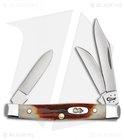 The Case Small Stockman with flamed red stag scales is a great addition to your collection or pocket. Tru-Sharp surgical stainless steel clip point and pen blades provide plenty of versatility for your daily cutting tasks. Flamed red stag scales are warm red and brown hues with an oval inlayed Case script medallion. Polished nickel silver bolsters with brass pinned construction ensures years of reliable use.