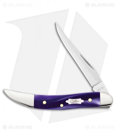 This Texas Toothpick model has a wicked purple kirinite handle and a stainless steel blade. Add a classic pocketknife to your collection with the Small Texas Toothpick from Case Knives. This model has a clip point blade with a nail nick opener. Nickel silver bolsters and a case logo inlay finish off the collectible design.