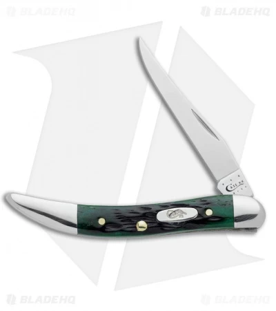 The 09722 Small Texas Toothpick knife from Case Knives showcases deep Bermuda green jigged bone handles and a stainless steel clip point blade. (610096 SS)