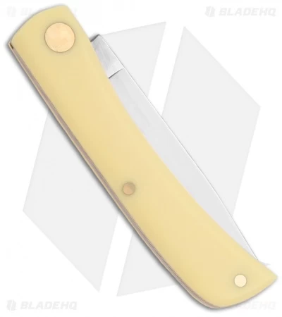 The 00032 Sodbuster Jr. pocket knife is outfitted with a smooth, yellow synthetic handle and a chromium vanadium carbon steel drop point blade. (3137 CV)