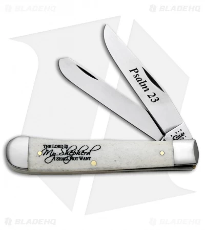 This “Psalm 23” Trapper model has a natural bone handle.
