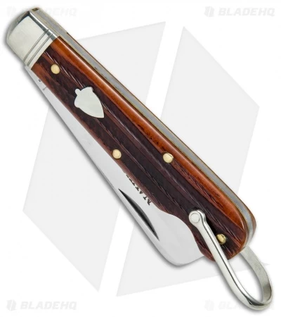 This #15 model sports burnt orange jig bone handle scales and a bail loop for secure attachment and carry. The Great Eastern Cutlery #15 Navy Knife is a classic pocket knife design equipped with a 440C stainless steel blade, nickel silver bolsters, and polished brass liners/pins. Its mariner’s style blade safely executes cutting tasks during daily utility or emergency situations.