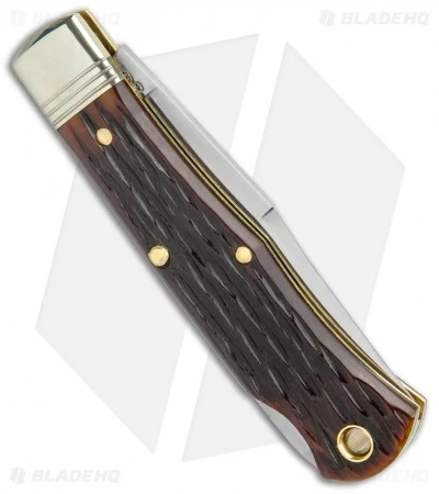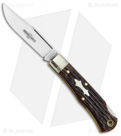 - Dark brewed jigged bone handle scales with nickel silver bosters and shield.