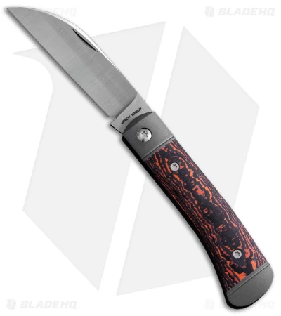 - Red and black carbon fiber scales from Fat Carbon over titanium liners and bolsters.