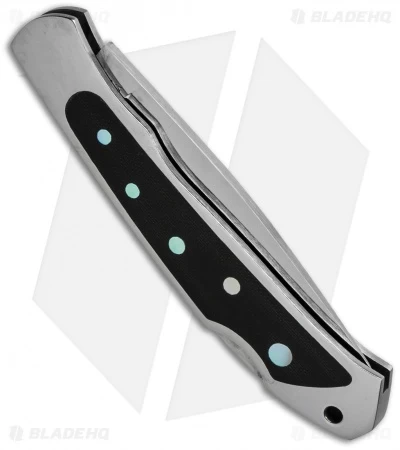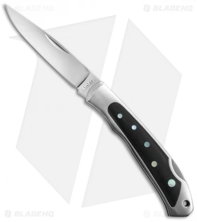 The Moki Serapis is a high quality gentlemen’s folding knife that has a black micarta inlayed handle and a razor sharp VG-10 blade. It has a streamlined handle made from polished stainless steel that features a black micarta handle scale with gold shell inserts. The knife includes a sheath and has a lanyard hole for convenient every day carry. Handmade quality and durable construction make the Serapis a great all around knife.