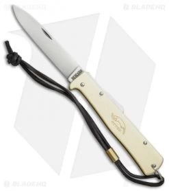 The Otter Mercator offers a minimalist design, built tough enough for everyday use and carry. It has a one-piece integral handle with a slim profile that rests comfortably in the pocket or hand. The sturdy lockback mechanism provides rock solid lock up and quick blade release. A bail loop and a nail nick opener add a classic touch to the design. This Mercator model has a brass handle with a cord lanyard and a carbon steel blade.