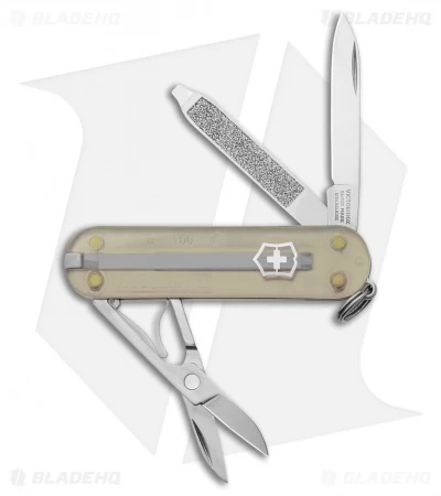 The traditional Victorinox Classic SD Swiss Army knife is…well…the classic Swiss Army Knife. Featuring six popular components, it is functional and versatile, and yet with a closed length of just 2.25″ it is compact enough to fit in your pocket. This everyday carry knife is the perfect size to keep on your keychain or slip into your pocket. This model has a mystical morning colored handle.