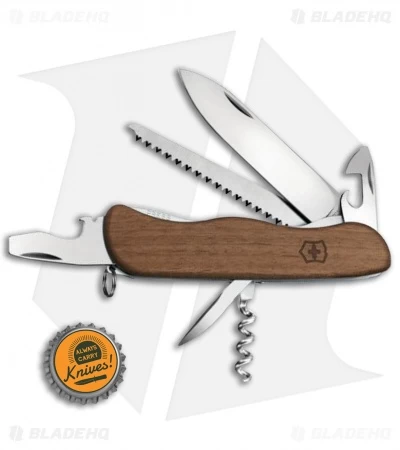 The Victorinox Forester is a large pocket knife designed for camping and other outdoor adventures. This one has walnut wood handle scales.